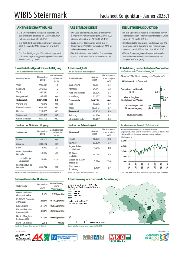 - 29. Oktober 2024: Beschäftigungs- und Arbeitsmarktprognose für die Steiermark 2024 und 2025 (Oktober 2024)